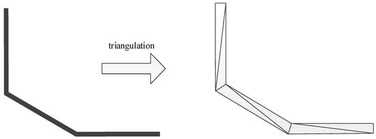 Line layers can be divided into three categories: single-line layers, wide-line layers, and symbol-line layers. The GL map rendering engine draws single-line features directly using OpenGL-supported APIs, but the GL engine first splits the wide-line layer into rectangles for the wide-line layer, then splits the rectangle into triangles, and then renders it. The process workflow of triangulation of wide-line is shown in Figure 4.