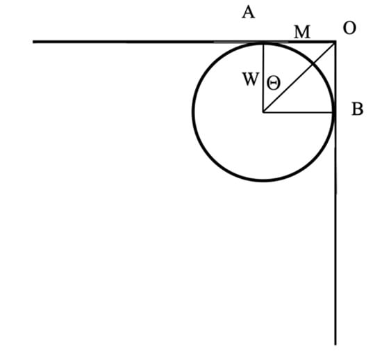 In this study, the following algorithm was used to calculate the cross-sectional matrix smoothed by the inflection point: Project the two lines that meet the inflection point into the plane where the two lines are located. Make a circle in the plane tangent to the two lines. As shown in Figure 3, the arc AB is the position of the center-line of the transition section. The more transition sections you take on this section, the smoother the inflection point. The length of the point A to the inflection point O is the length M of the pipeline section that needs to be retracted. By the constraint that the radius of the circle cannot be greater than the width W of the pipeline, we can get the value of M using formulation (2):