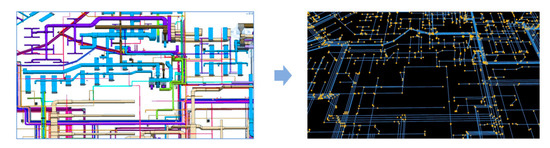 Figure 9. From BIM model to 3D pipe network data model.