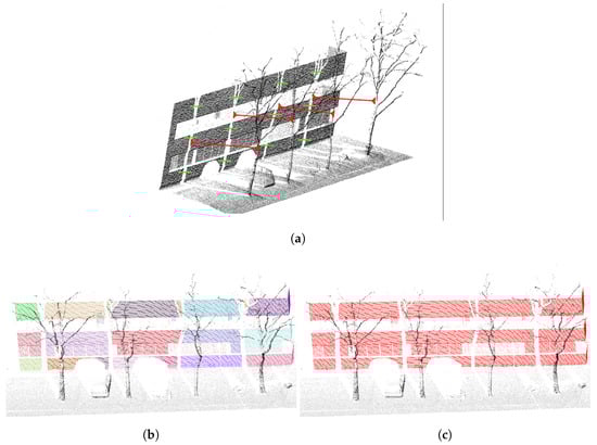 Then, for the segmentation step, some model-driven approaches, such as References [,], use a Hough transform adapted to 3D [] to detect planes and identify the floor and buildings in order to reconstruct them in 3D. Other approaches such as that in Reference [] use RANdom SAmple Consensus (RANSAC) [] to detect shapes (such as planes, spheres and cylinders).