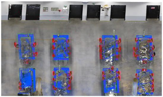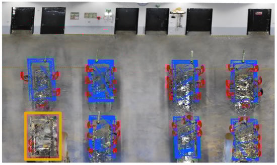 However, a reasoning mechanism can anticipate and compensate for this loss of local information. In this example, the reasoning allows for inferring the location of possibly occluded areas (highlighted by the red dotted rectangle in Figure 4) from the position of the measuring instrument and the detection of an object (illustrated by the red rectangle in Figure 4) in the alignment of the horizontal scan. Thus, reasoning on information about the acquisition process (acquisition method, measuring instrument, the content of the acquired scene) allows for anticipating and locating the occluded areas. The identification of occluded areas provides information that improves the detection process. For example, it allows for gathering each part of an object which was separated due to some occlusions into the same object. It also provides essential information that influences the selection of algorithms through relations between algorithm requirement and the characteristics of the data.