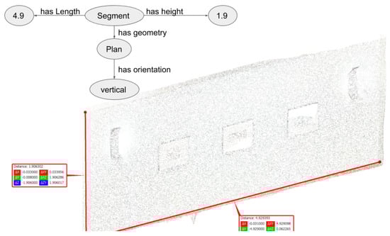 The semantic-based methodology of classification first segments a point cloud. Secondly, it estimates geometric properties of segments to generate ontologies expressed in OWL. Thirdly, it applies reasoning to classify and gather segments based on their features’ description inside the knowledge base. This methodology is used in the cultural heritage domain ([,]) but also other domains as a straightforward extension of a previous approach in Reference []. Some variations of reasoning techniques and tools can be observed among the different approaches using this methodology. Contrary to Reference [], the approach in Reference [] uses SWRL rules to reason and semantically annotate railway objects (e.g., tracks, signal) in a 3D point cloud data set instead of OWL constraints []. This variation of semantic technologies in the semantic methodology mainly has an impact on the reasoning performance of the classification. However, each of them benefits from the advantage of a classification adapted to the defined knowledge that requires only a knowledge representation adaptation to classify new objects or process new data that would contain other object representations. This semantic-based methodology of classification is based on a classical segmentation processing that limits the performance of the semantic classification if the segmentation process is not adapted to the object to detect and its representation in the knowledge base. Therefore some approaches, such as References [,], combine the segmentation and classification process simultaneously through ontology-driven approaches. The use of explicit knowledge about data, object and algorithm in the segmentation process aims at providing adaptability in the selection of the algorithm to segment the data and thus allows an automatic adaptation of the segmentation process.