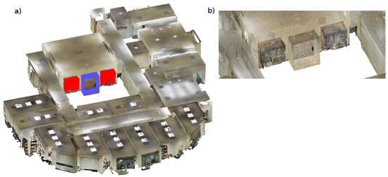 The data-driven methodology is composed of machine learning approaches and heuristic approaches. With the increase of 3D data and efficiency provided by machine learning, the machine learning approaches are being used more and more. The machine learning approach is comprised of a large variety of techniques. The machine learning approaches based on convolutional neural networks (CNN) like in Reference [] and region-based convolutional neural networks (R-CNN) like in Reference [] provide accurate object detection. In addition, the approach in Reference [] based on ResNets [] produces fast and efficient object detection in images. However, approaches using an R-CNN like in Reference [] are only usable on dense data sets and organized into a tensor structure. Therefore they are mainly not applicable to 3D point clouds. The VoxelNet approach in Reference [] proposes an adaptation to 3D by using a voxel grid to obtain proper object detection. Similarly, the approach in Reference [] adapts the convolutional network to the 3D. The approach in Reference [] based on PointNet [] uses the location of objects to improve their detection. Other approaches in References [,] combine 2D and 3D data to increase detection quality. Among the machine learning approaches, the approaches of References [,] obtain excellent results in the application case of room detection in a 3D modern building. That is why Section 4 uses the result of their works to compare with the result of the approach presented in this paper. However, all machine learning approaches require training on annotated data.