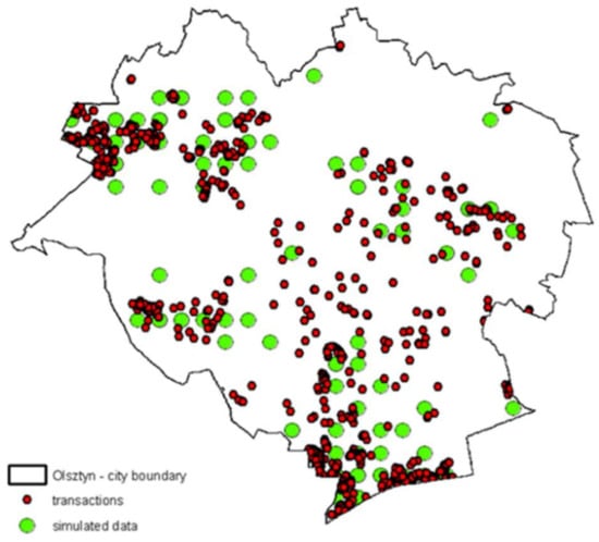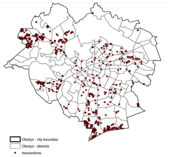 The input data was the set of information on transactions which occurred in the city of Olsztyn during the period under study. The spatial distribution of the input data is shown in Figure 3.
