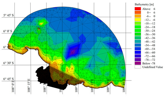 This study has used several data to simulate post-events of tidal floods. Firstly, the bathymetry and land topography information for the domain areas were handled as two main inputs for the model. Bathymetry of the Java Sea has been generated using gridded national bathymetry of Indonesia (BATNAS) provided from the Geospatial Information Agency (we referred to BIG: ‘Badan Informasi Geospasial’ in Indonesian) (http://tides.big.go.id/DEMNAS/) within a 6 arc-second resolution. This data has been produced through the inversion of gravity anomaly of altimetry by adding sounding data carried with single and multi-beam surveys, which has better resolution in coastal areas than GEBCO (30 arc-second) [44,45]. Land topography data was resolved using the DEMNAS (0.27 arc-second resolution) also from BIG. DEMNAS is national seamless digital elevation data which already constructed within assimilated data of IFSAR (5-m resolution), TerraSAR-X (5-m resolution) and ALOS PALSAR (resolution 11.25 m), by adding stereo-plotting mass-point data [45]. This research draws on a previous approach by Tehrany [46] and Zalite [47] to utilize detailed topographic data for flood models. Here, five subsets (1309-12, 1309-14, 1309-21, 1309-23, and 1309-24) of DEM within the 0.27 arc-second spatial resolution were employed, and merged into a single raster data using GIS.