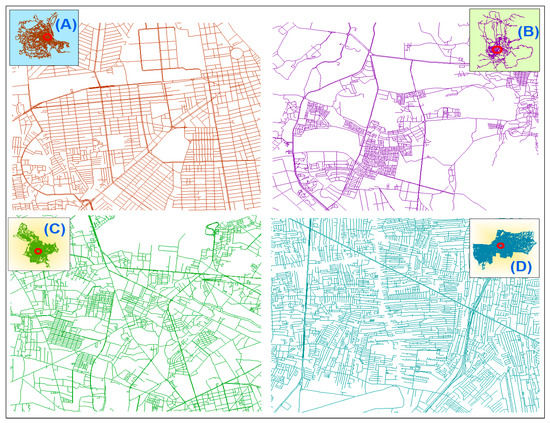 SNs play a vital role in people’s daily lives and contribute significantly to socio-economic activities. Many countries in Europe and North America have concentrated on the analysis of SNs in terms of sustainable transportation and research planning [6,7]. However, the literature on SNs in the member states of the ASEAN countries remains scarce [5,7]. Some studies in the context of ASEAN have only focused on general SNs of an individual city [8]. Researchers have also noted that most of the studies in developing countries measure only SNs by car [9], bike [10], transit [11], and train [12], but comparative analyses of DSNs versus WSNs have not been done [13]. Most of the studies that are available across this region focus mainly on land use [14], energy [15], general SNs [16], transport systems [17], and traffic issues [18]. Specifically, the literature providing a comparative analysis of DSNs and WSNs in the member cities of the ASCN is scant. Therefore, access to geospatial datasets for SNs and other urban data is a considerable challenge, which requires excessive data processing and simplifications [19,20]. Our study has yielded reproducible street datasets for each ASCN pilot city.
