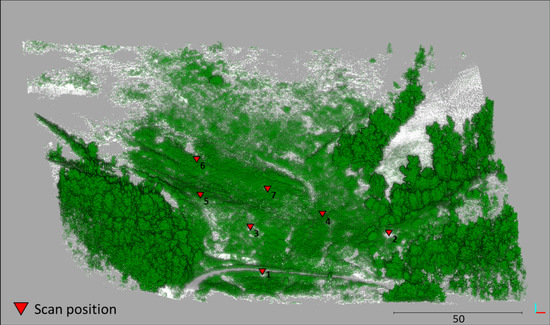 The 3D point cloud was obtained with a terrestrial laser-scanning survey in which seven different scans were acquired from different positions in order to limit the shadow areas (Figure 8).