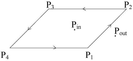 As all the corresponding dimensional subspaces’ symbols are inconsistent in the outer product results, it is possible to determine that the point Pout is located outside the parcel according to the third rule in Definition 7.