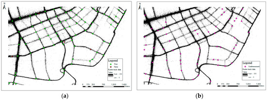 The final intersection extraction results: (a) results of the intersection detection in Wuhan; (b) results of the intersection detection in Chicago.