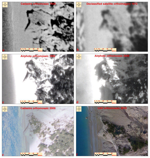 Combination of Aerial, Satellite, and UAV Photogrammetry for Mapping the Diachronic Coastline Evolution: The Case of Lefkada Island