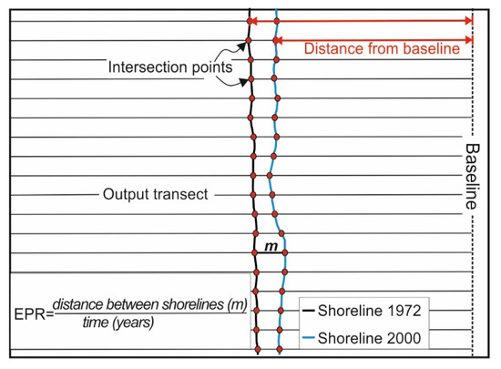 - Anfuso, G.; Bowman, D.; Danese, C.; Pranzini, E. Transect based analysis versus area based analysis to quantify shoreline displacement: Spatial resolution issues. Environ. Monit. Assess. 2016, 188, 568. [Google Scholar] [CrossRef] [PubMed]