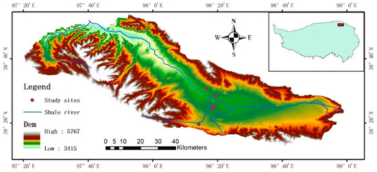 Spatial distribution of study sites in the upper reaches of Shule River.