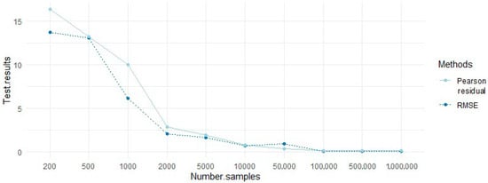 To estimate the posterior values for the model parameters , different size of samples, ranging from 200 to 1,000,000, were drawn from the posterior distributions using MCMC simulation, based on the Gibbs sampling method and Metropolis-Hastings steps. Both Pearson residual and RMSE were applied to evaluate the performance and fitness of model development.
