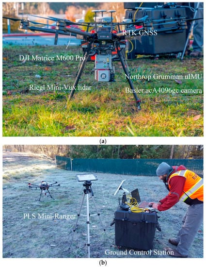 Nonetheless, despite these promising results, ULS is still in its infancy; hence, researchers and practitioners have begun testing the capabilities of ULS to reliably support a variety of applications. One of the earliest examples comes from Wallace et al. [5], who developed a low-cost ULS system on an OktoKopter platform for forest management applications. Additional examples include canopy height modeling (CHM) and diameter at breast height (DBH) [6], and erosion monitoring on Alpine slopes [7]. For instance, Brede et al. [6] compared canopy height models derived from ULS-based lidar point clouds to TLS-based lidar point clouds. Wallace et al. [8] compared two separate technologies using the UAS platform, structure from motion (SfM) and ULS, in order to assess each respective technique’s ability to model forest structure. A somewhat similar study was performed by Salach et al. [9], who compared ULS to both UAS SfM and ALS. The work by Mayr et al. [7] provides an example of the capabilities of ULS to successfully monitor erosion through the use of multi-temporal datasets. Part of their work also included performing a comparative analysis of ULS and TLS. They stressed that further studies into the effects of the scan angles and ranges of the two systems would provide additional insight into understanding the differences between these technologies.