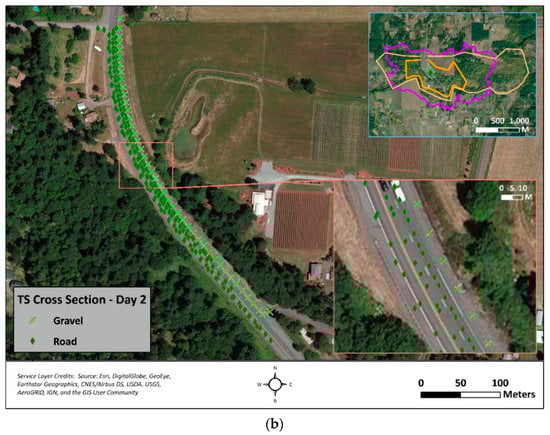 Locations of total station measurements obtained in the study area for (a) day 1 and (b) day 2.