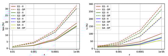 The relative number of breakpoints and the relative time related to exact LCA (II—Imai and Iri, DP—Douglas–Peucker).