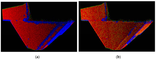 Barsanti et al. [35] evaluated a region-growing algorithm to group points into clusters based on the angular comparison between locally estimated surface normals. They concluded that working on PCs does not seem to be the most suitable approach for creating a 3D segmentation to analyze historic concrete structures. On the other hand, when they applied the segmentation directly on meshes, appropriate results were only produced with the manual process and not with a completely automatic approach. Lague et al. [36] measured surface changes via a direct comparison of PCs without meshing or gridding. The first step is surface normal estimation and orientation in 3D at a scale consistent with the local surface roughness. In the second step, the mean surface change is measured by computing the local distance between the PCs of two epochs along the normal surface direction, which tracks 3D variation in surface orientation. Precise registration allows in situ change detection down to 6 mm at 95% confidence over ranges of 50 m, depending on the instrument used. The main drawback is that the deformation is one-dimensional, along the direction of surface normal. Additionally, if a change in surface orientation has occurred between two epochs, the average normal is considered. Consequently, the deformation direction will be incorrect [15].