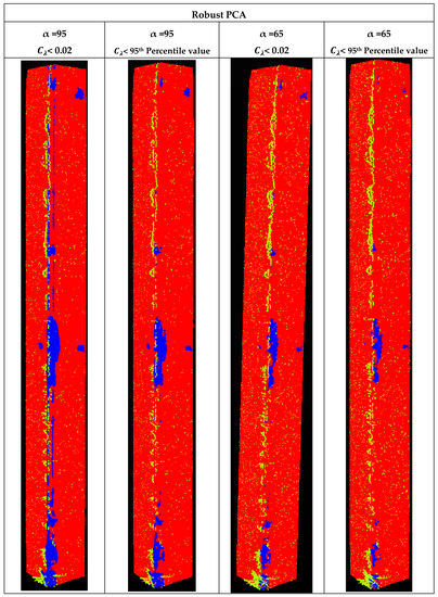 3.2.2. Automatic Definition of Thresholds for Robust PCA Classification