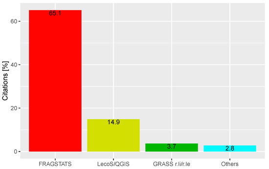 - 70 (65.1%) papers cited FRAGSTATS as software for the evaluation of landscape metrics;