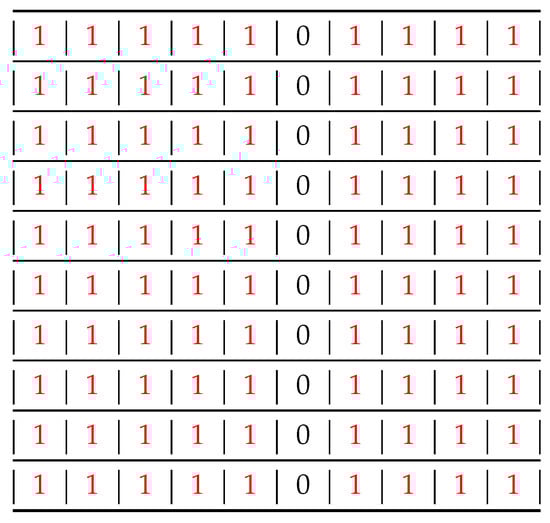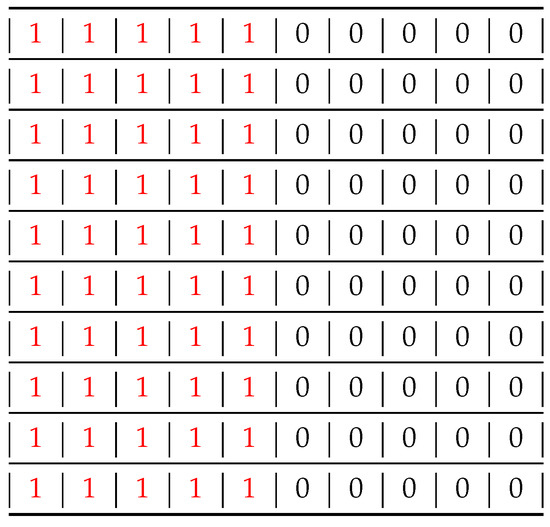 Scheme of the configuration of the second artificial test map, consisting of two large patches separated by a single column of 0 values.