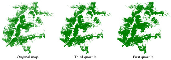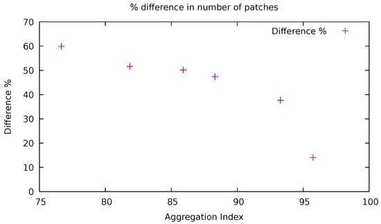 Tests on artificial (Section 3.3) and real (Section 3.4) maps were carried out using three different software systems: FRAGSTATS [12], GRASS GIS [43], and QGIS [44]. The rationale behind this choice is that using software in the public domain (FRAGSTATS) or available as free and open software (FOSS) (GRASS GIS and QGIS) allows the replication of the experiments described in this paper. Additionally, FOSS source code is available for analysis. Therefore, possible discrepancies between metrics’ values can be resolved examining the code.