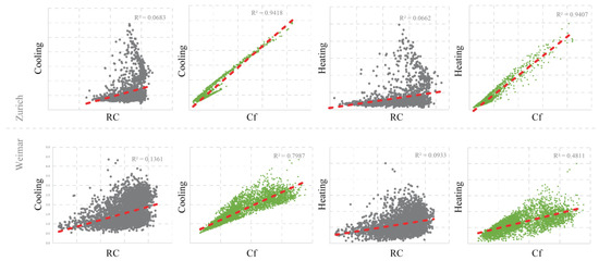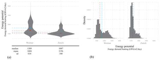 The data describing the Zürich building stock (i.e., building type and year of construction) was acquired by the Statistical office of Zürich and combined with the urban form model (i.e., street network and buildings in LOD1) acquired by the Planning office Zürich. In the case of Weimar, all data on urban form and land use was collected from the geoinformation platform of the German state Thuringia—geoportal-th.de. All publicly available data sources used in this research can be accessed as described in the section Supplementary Materials.
