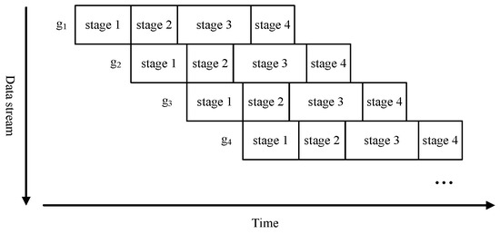 For a data stream S = {g, g, g, g, …}, the four-stage pipeline is illustrated by Figure 6.