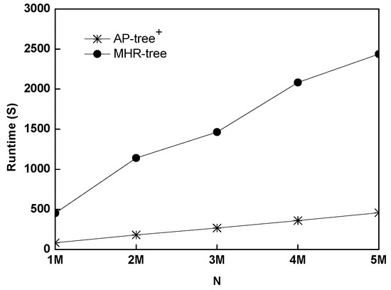 The CPU runtime of AP-tree comparing with MHR-tree.