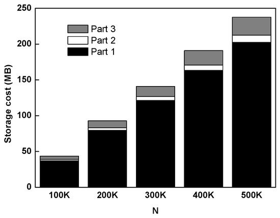 In this experiment, we investigate the storage cost of G-AP-tree based on TWEETS dataset. According to the structure of G-AP-tree in Figure 4, we can know that the space cost of one G-AP-tree consists of three parts: