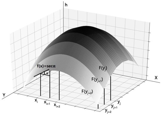 h(xi) is the elevation value at the xi point, and width is the width in the x-direction.