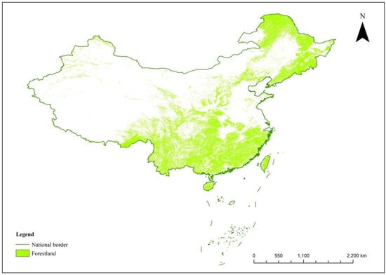 Forestland distribution of China.