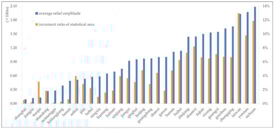 Comparison of the increment ratio of the statistical area and the average relief amplitude.