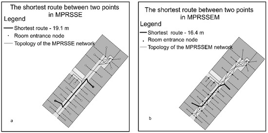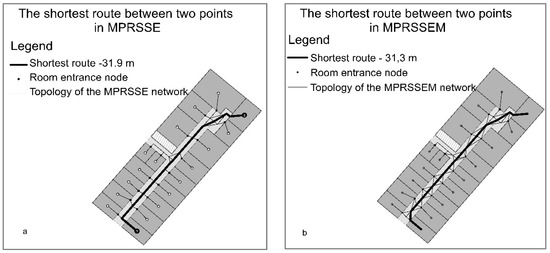 The shortest routes between two rooms in two models: (a) MPRSSE and (b) MPRSSEM.