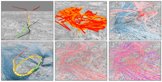 - Klein, T.; van der Zwan, M.; Telea, A. Dynamic multiscale visualization of flight data. In Proceedings of the 2014 International Conference on Computer Vision Theory and Applications (VISAPP), Lisbon, Portugal, 5–8 January 2014; pp. 104–114. [Google Scholar]