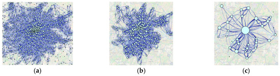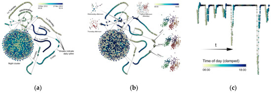- Landesberger, T.V.; Brodkorb, F.; Roskosch, P.; Andrienko, N.; Andrienko, G.; Kerren, A. Mobilitygraphs: Visual analysis of mass mobility dynamics via spatio-temporal graphs and clustering. IEEE Trans. Vis. Comput. Graph. 2016, 22, 11–20. [Google Scholar] [CrossRef] [PubMed]