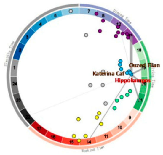 - Wu, W.; Xu, J.; Zeng, H.; Zheng, Y.; Qu, H.; Ni, B.; Yuan, M.; Ni, L.M. Telcovis: Visual exploration of co-occurrence in urban human mobility based on telco data. IEEE Trans. Vis. Comput. Graph. 2016, 22, 935–944. [Google Scholar] [CrossRef]