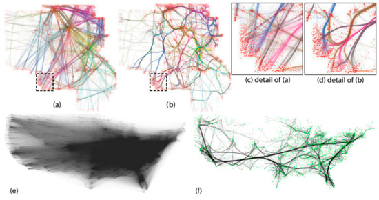 - Ersoy, O.; Hurter, C.; Paulovich, F.; Cantareiro, G.; Telea, A. Skeleton-based edge bundling for graph visualization. IEEE Trans. Vis. Comput. Graph. 2011, 17, 2364–2373. [Google Scholar] [CrossRef] [PubMed]