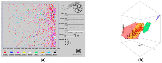 - Ahlberg, C.; Shneiderman, B. Visual information seeking: Tight coupling of dynamic query filters with starfield displays. In Proceedings of the SIGCHI Conference on Human Factors in Computing Systems, Boston, MA, USA, 24–28 April 1994; pp. 313–317. [Google Scholar]