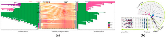 - Kim, S.; Jeong, S.; Woo, I.; Jang, Y.; Maciejewski, R.; Ebert, D.S. Data flow analysis and visualization for spatiotemporal statistical data without trajectory information. IEEE Trans. Vis. Comput. Graph. 2018, 24, 1287–1300. [Google Scholar] [CrossRef]