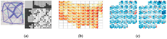 Meshing methods are a spatial-visualization technique that displays statistical data in a mesh pattern. When applied to trajectory set data, these methods refer to representing trajectory sampling data on a map according to their homogeneity in a certain mesh cell. If regarded as homogeneous, these data are directly assigned attributes and then visualized; if not, the set cells are subdivided into smaller mesh cells according to certain rules or requirements, and the data are distributed to each cell for visualization processing via comprehensively weighing its spatial distribution features. As a persuasive example and a novel mesh-based visualization method, TrajGraph [53], proposed by Huang et al. from Kent State University, has a good visualization effect when handling the scale and complexity of trajectory data and supporting domain users while interactively searching and comparing time-varying traffic information of urban roads with real traffic information.