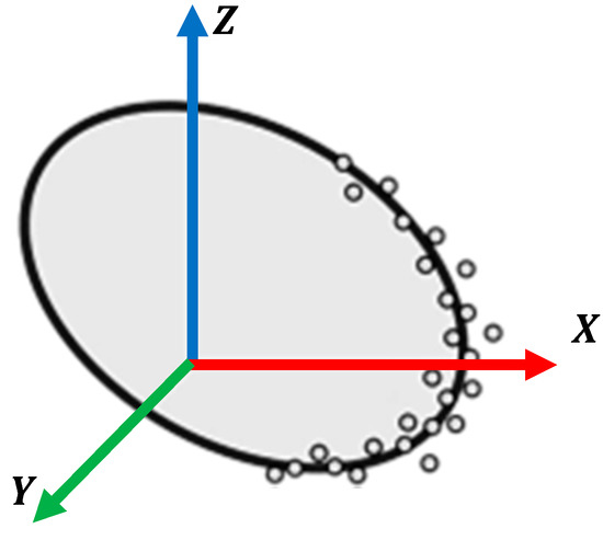 Therefore, the objective function is to minimize the distances from the fitting points to the cone surface, as illustrated in Figure 3.