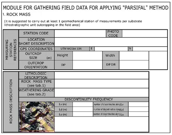Example of the form (for rock masses) for data collecting used in the field survey (modified from the original form in Italian).
