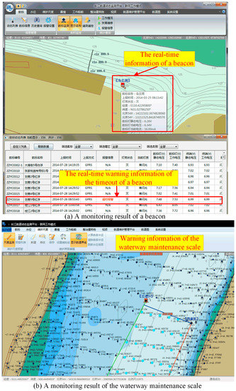 The real-time and open system has been applied to monitor and analyze the main channel of the Yangtze River, as shown in Figure 9.