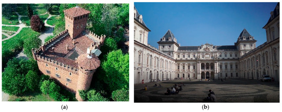 Test area: (a) The Rocca in the ‘Borgo Medievale’ and (b) The Valentino Castle.