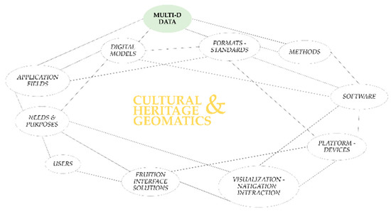The research proposed here mostly refers to an essential answer to the diffuse increasing spread of innovative input and traditional requests in the Cultural Heritage domain belonging to the digital era: it has to face many domains (disciplines, users, purposes, data, formats, software, supports, type, and mode of visualization) that are connected with each other.