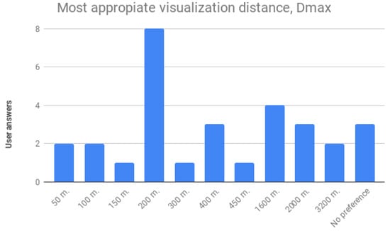 - Finally, we are looking for the best maximum distance for showing utilities in the scenario. Please set the alpha visualization mode and the linear method. Now, please test different fading distances and then use the fingers to zoom in, zoom out, move and change to 3D view. We suggest testing 50, 100, 200, 400, 800, 1600 and 3200, but you could also test a distance of your choice. Which one is, in your opinion, the most appropriate for the visualization of utilities? (Options: A number)