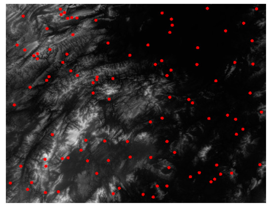 A 11264 by 9152 DEM of a mountainous area in Hunan Province, China. Randomly select 100 positions when the radius equals 100.