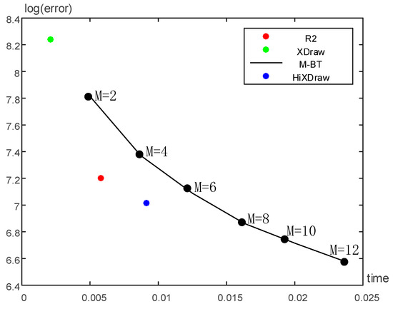 Either time ratio η or error ratio μ indicates a better performance with a smaller value. With these two variables, we can access the accuracy and efficiency of HiXDraw, R2 and XDraw statistically. As we did not implement Zhi’s method directly, we use the data recorded in Reference [23] to evaluate the performance of Zhi’s method and make a comparison between HiXDraw and Zhi’s method.
