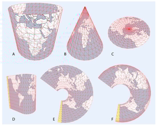 - Kippers, R. Map Projections. 2019. Available online: https://kartoweb.itc.nl/geometrics/Map projections/body.htm (accessed on 27 February 2019).