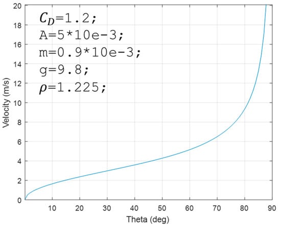 Since the mass of the resisting plate (m), gravity constant (g), the area of the resisting plate (A), air density (), and the drag coefficient () can be considered as constants, so Equation (5) can be rewritten as shown in (6).